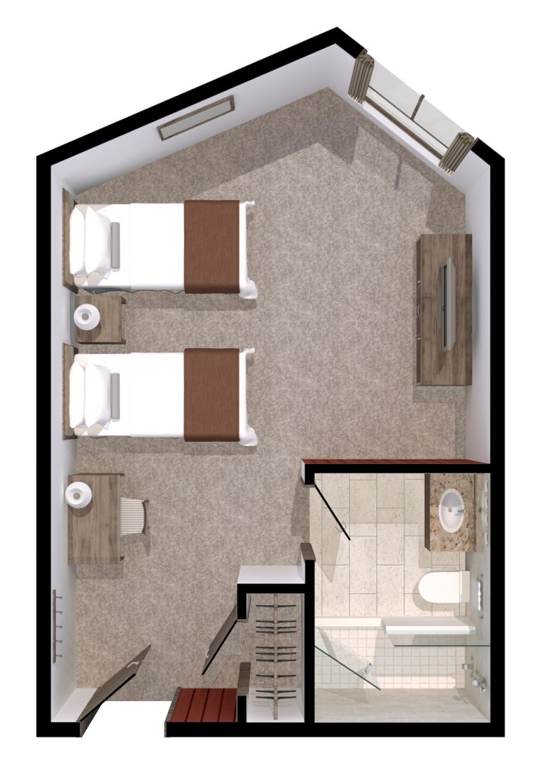 370 sq. ft. (king), 275 sq. ft. (twin)