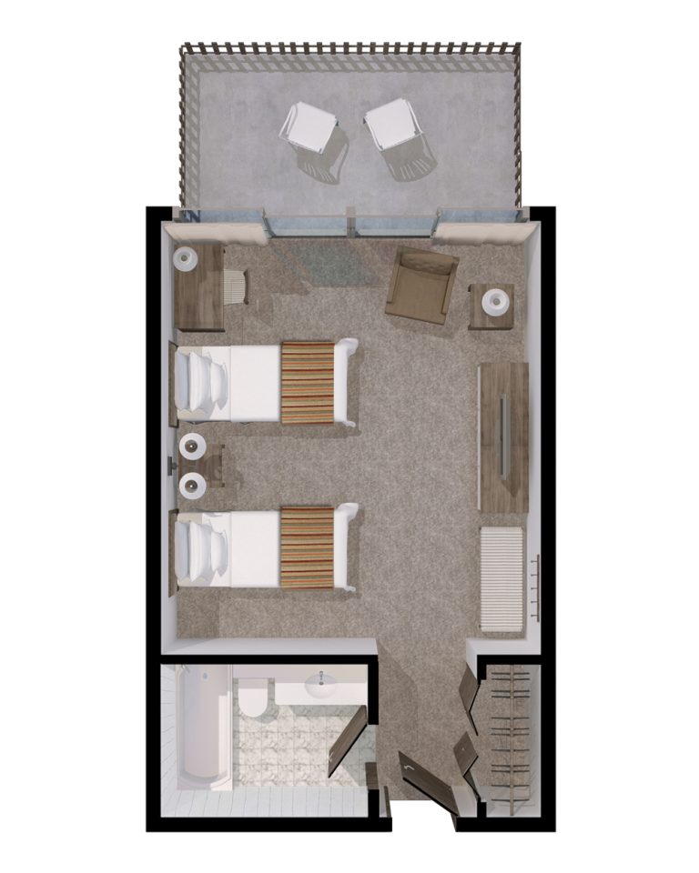 Our Cecret Rooms have either one king-size bed or two twin-size beds.