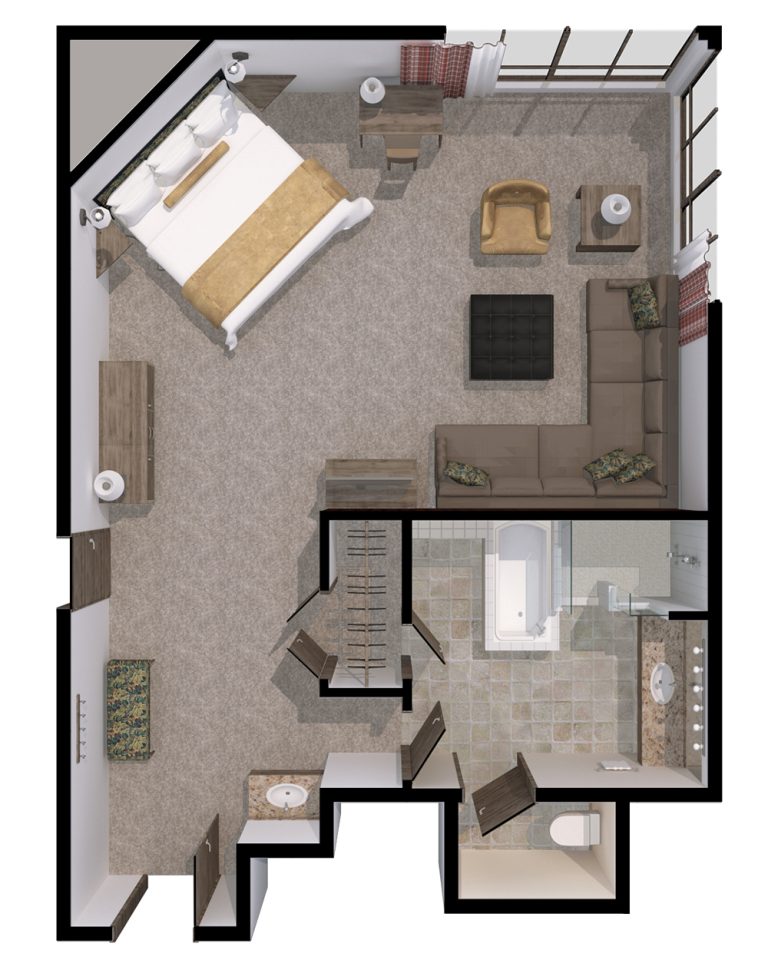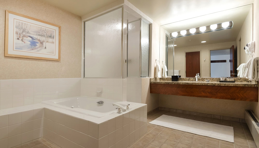 Spacious Bathroom with Shower, Soaking Tub and Inner and Outer Vanities