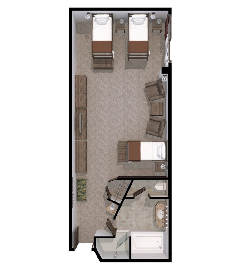 Two bunk rooms are offered and located on the seventh and eighth floors.