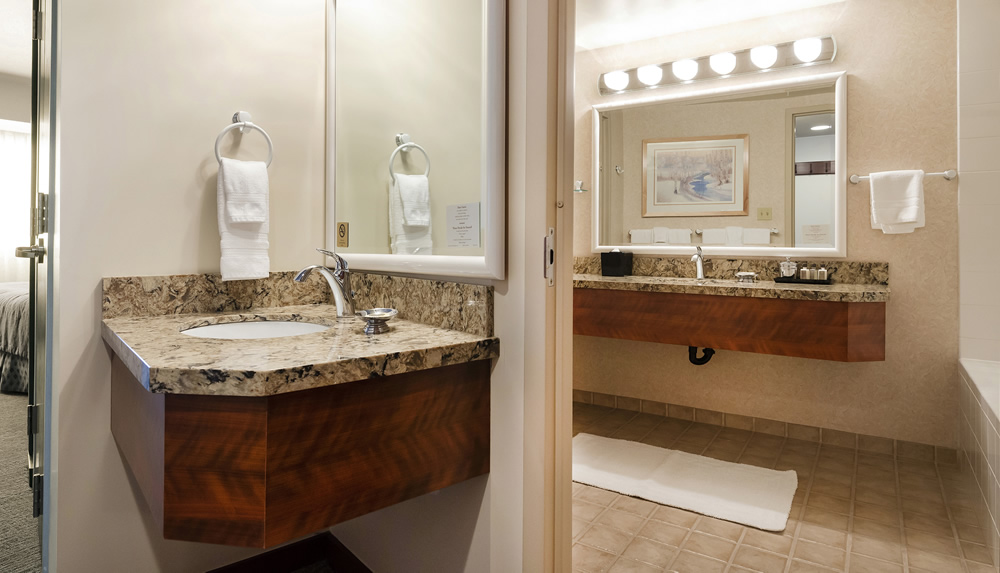 Spacious Bathroom with Shower, Soaking Tub and Inner and Outer Vanities